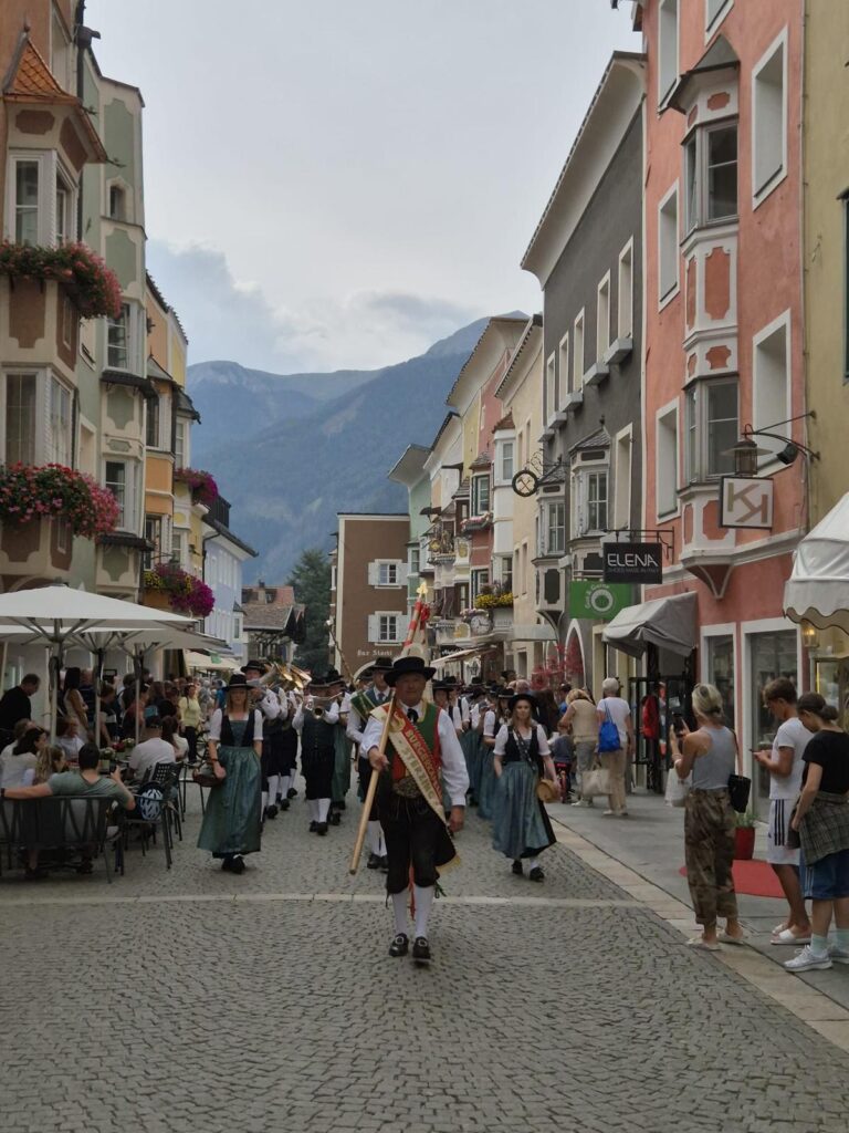 Am 15. August 2025 – dem stärksten Urlaubstag Italiens – marschierten wir durch die wunderschöne Sterzinger Altstadt und gaben anschließend ein Platzkonzert für das wahrscheinlich größte Publikum, das wir bisher hatten. Die Sprachbarriere konnten wir gut überwinden, da uns eine charmante „Dolmetscherin“ der BK Sterzing unterstützte.